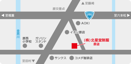 - サンクス原8丁目店様向かいの交差点を東進後、コメダ珈琲原店様の向かい側、イオン原店様駐車場隣にございます。